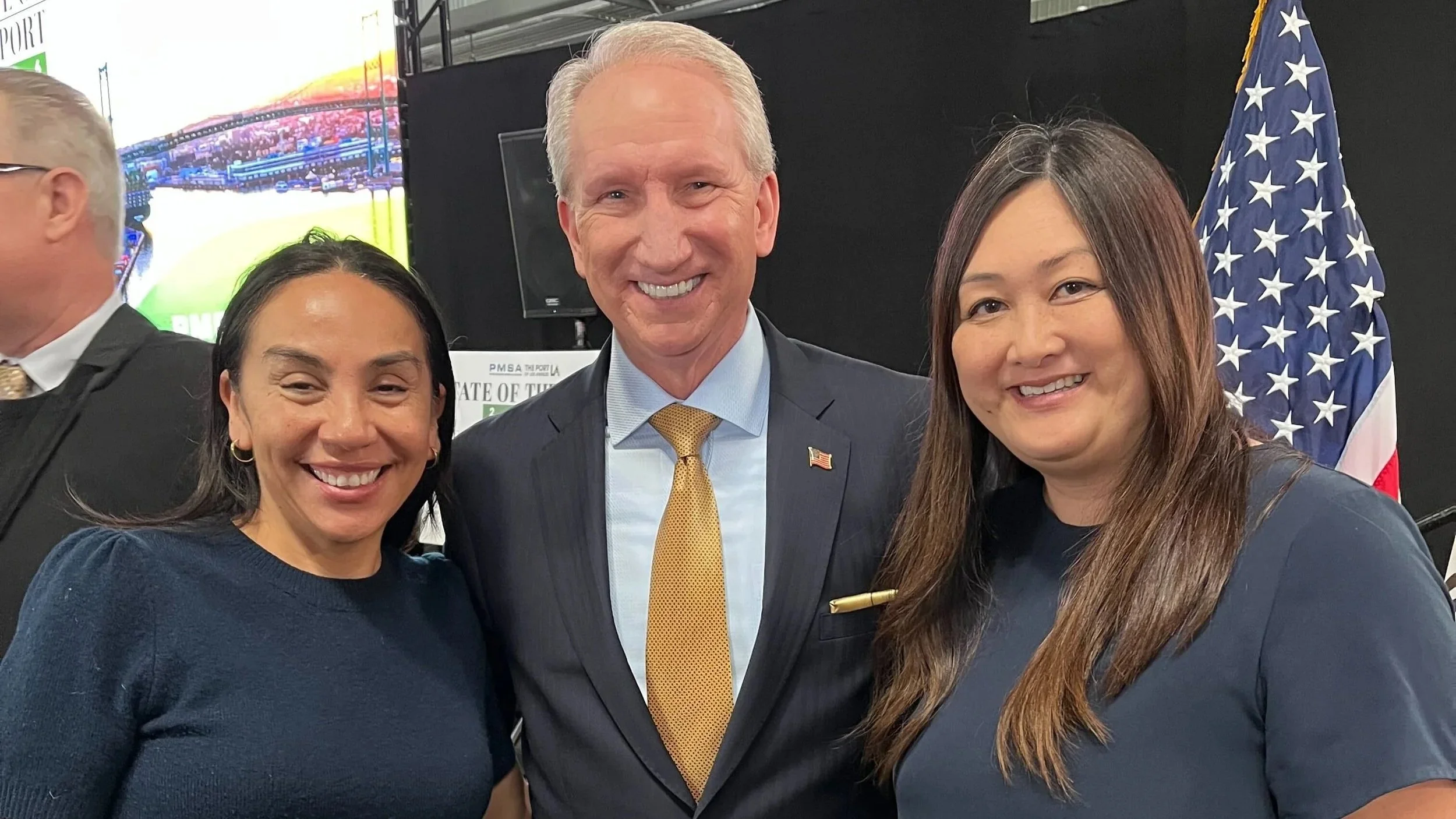Toberman Neighborhood Center CEO Dr. Lupe Rivera, Port of Los Angeles Executive Director Gene Seroka, and EXP CEO Mary Tran at the State of the Port